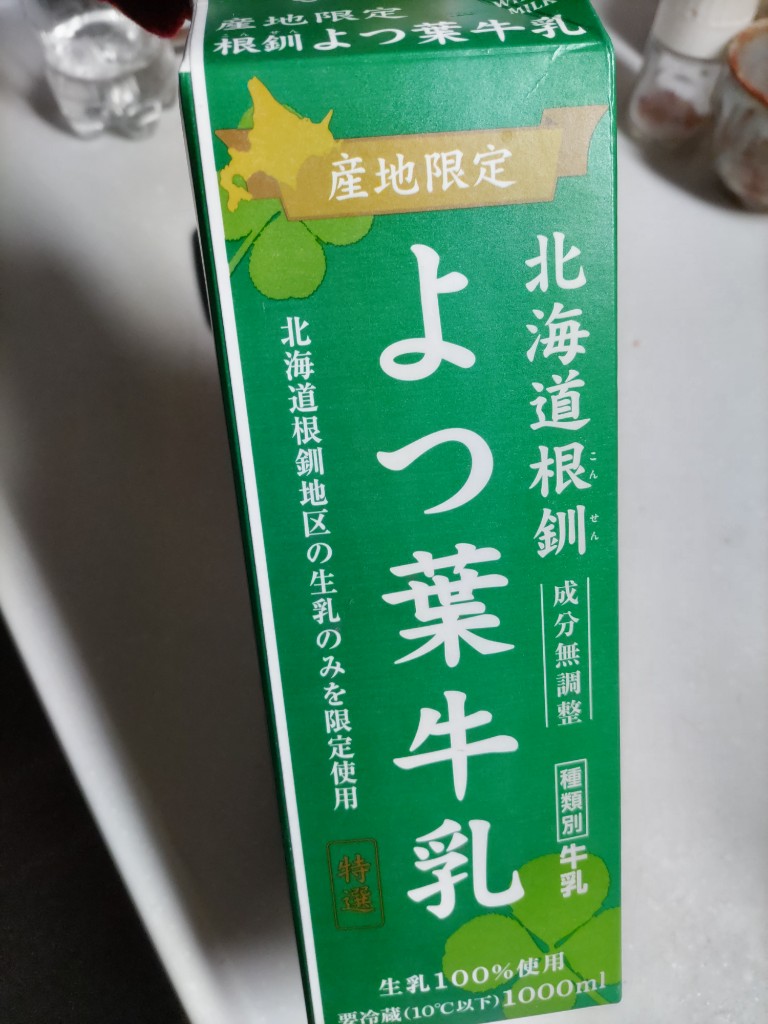 市販で手軽に購入できる牛乳では、よつ葉さんが好きです。
