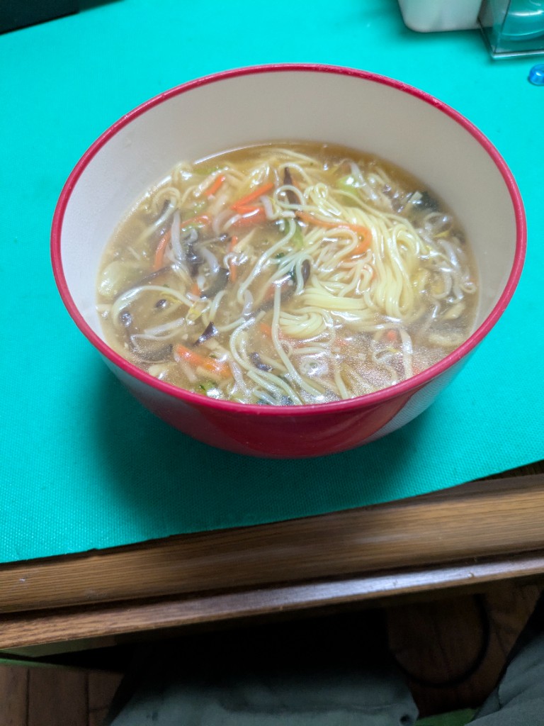細麺で食べやすく、スープがとろとろしていて麺にまとわりついてすすれるので美味しい!野菜は冷凍食品な感じは否めないが、たっぷり野菜が入っているのは嬉しい。しっかり食べ応えがある。... 続きを読む
