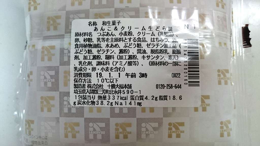 セブンイレブンのたっぷりあんことクリームのどら焼きです。