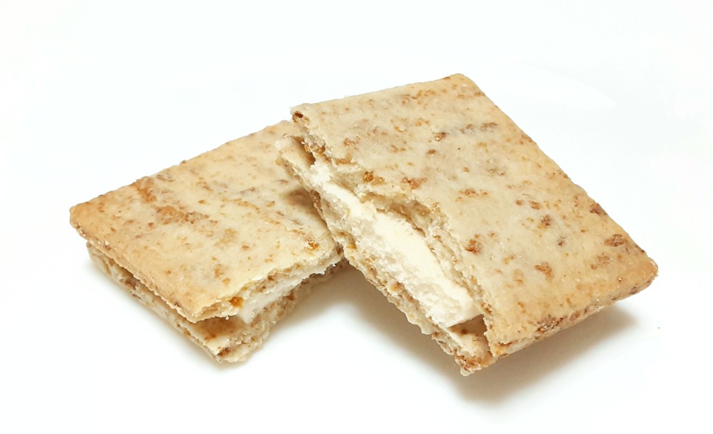 開封するとクリームがサンドされたクッキーが二枚。見た目はビスケットのような。