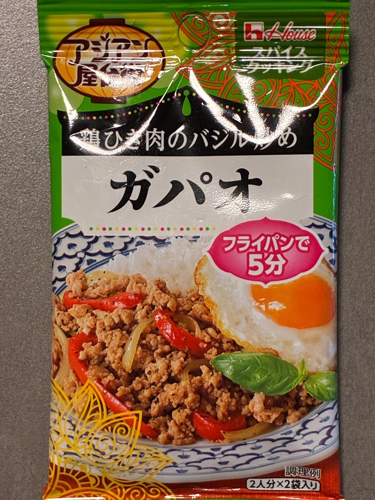 ガパオ なんとなく購入したガパオのスパイス。 レシピにはこれ野菜やらに醤油やら砂糖やら加えるとありますがそれらを無視しためーぐークッキングです。 ひき肉ないから鶏胸肉をどーんと焼いてガパオスパイスをかけるだけ。 バジルやホワイトペッパーの独特の香りが、いい刺激ーーー。... 続きを読む