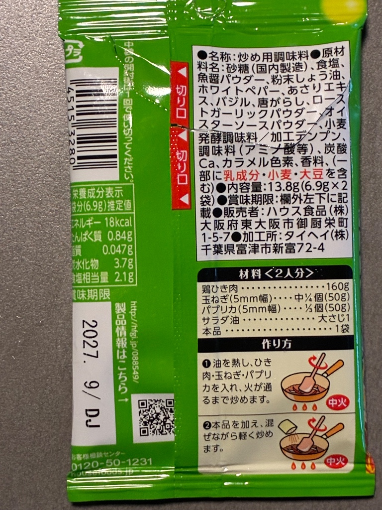 もぐナビホームへ > その他調味料・香辛料 > 調味料・香辛料・その他 > ハウス スパイスクッキング アジアン屋台街 ガパオ