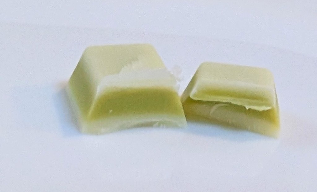 とろけるようなピスタチオの余韻を感じるチョコレートを、甘いコクを楽しめるホワイトチョコレートでサンド