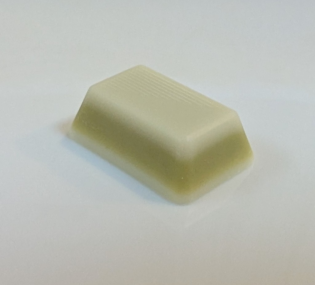 ミルクチョコレートの中に、ピスタチオチョコレートが入っている。