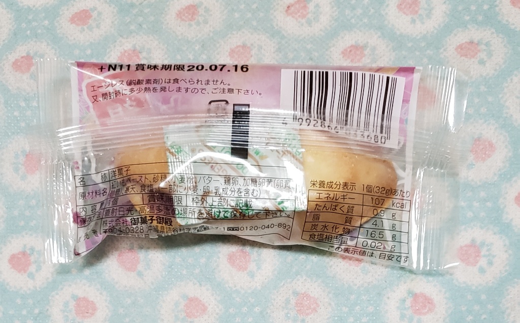 この手のものは、油っぽかったり、ザ・加工食品って感じで変な匂いがするのですが(失礼)こちらはそんな感じではなく、和菓子のような、わりとあっさりして普通に美味しかったです。手作り感あります。少しスイートポテトのような味がします。日本茶に合うなって思います。