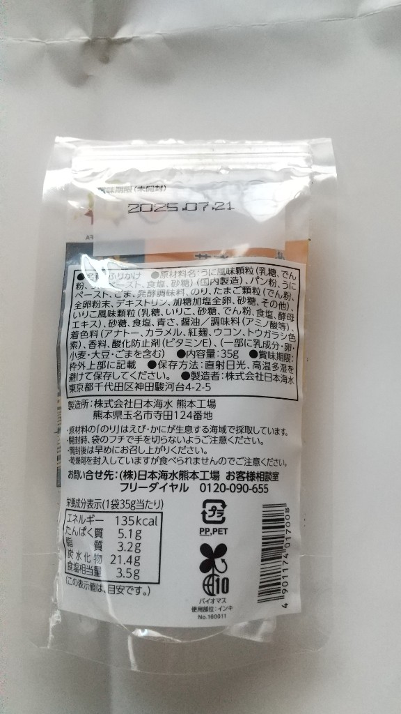 あっ確かにうに~甘めテイストのふりかけ。
