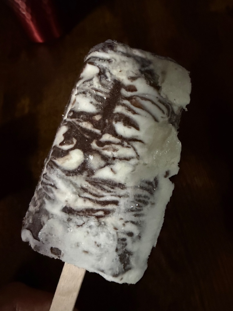 たまに厚いところがあり、そこはパキッと板チョコアイスみたいな食感です