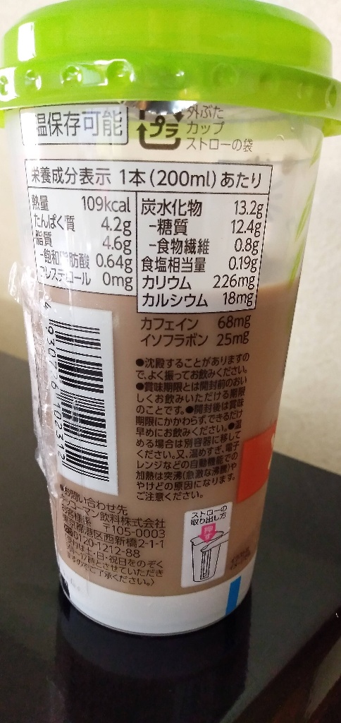 ソイティーとソイラテの2種類が出ていました😊まずは紅茶から。さっぱりだけどしっかり豆乳です。紅茶もニセモノ感なくてとっても飲みやすい!途中まで飲んで思ったんですが、よくある紙パックの豆乳の紅茶とはやっぱり別物なのかな。あっちは豆乳の紅茶味で、これは豆乳の紅茶割り、ってことかな。前に紙パック飲んだけど何となくこっちの方が甘さ控えめなような。あちらのが『豆乳』感は強かった気もします。こちらの方がさらっと飲みやすい気がします。美味しいからラテも買ってみよう😊1本109キロカロリー。... 続きを読む