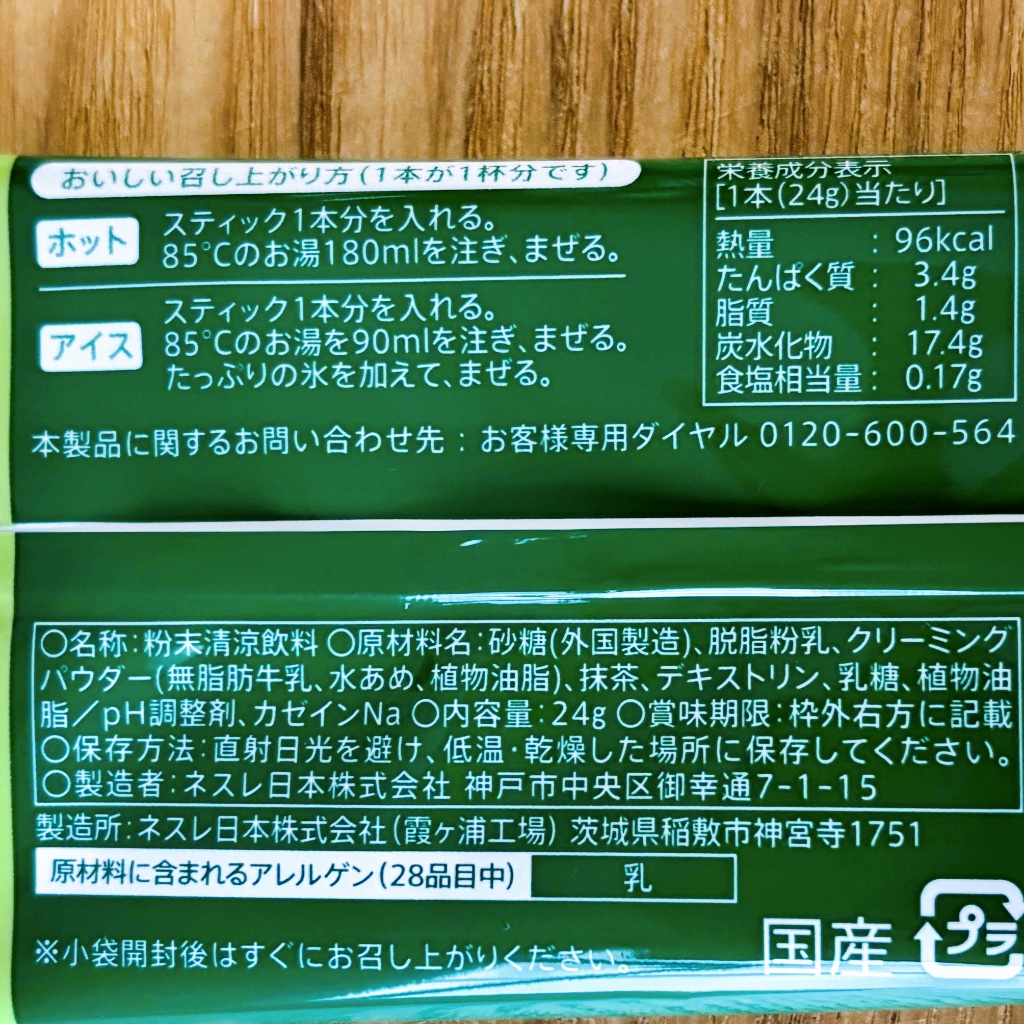 他メーカーのスティックタイプ抹茶よりは甘さ控えめな点も個人的に好みでした。
