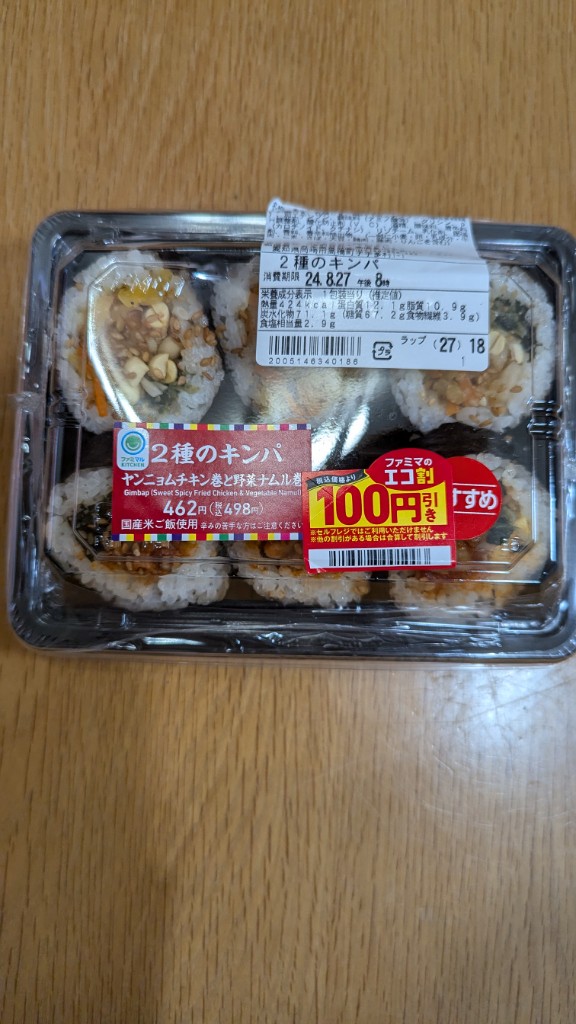 ファミマルKITCHEN 2種のキンパ ヤンニョムチキン巻と野菜ナムル巻