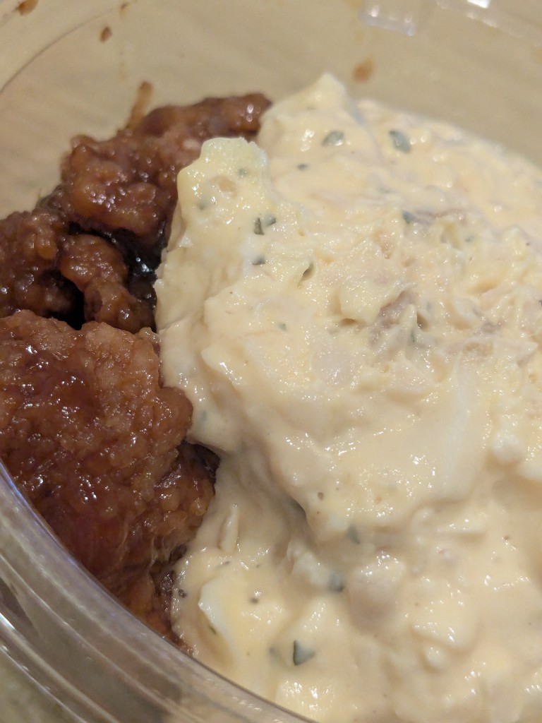冷たいチキン南蛮って…と思っていたのですが、意外においしい。冷たいので塩分を感じやすいのか味も濃いめに感じてごはんが進む味です。酢もほどよく利いていてこれからの季節食べやすそう。冷たい油って胃もたれするのですがこれくらいの量ならギリギリ大丈夫でした。... 続きを読む