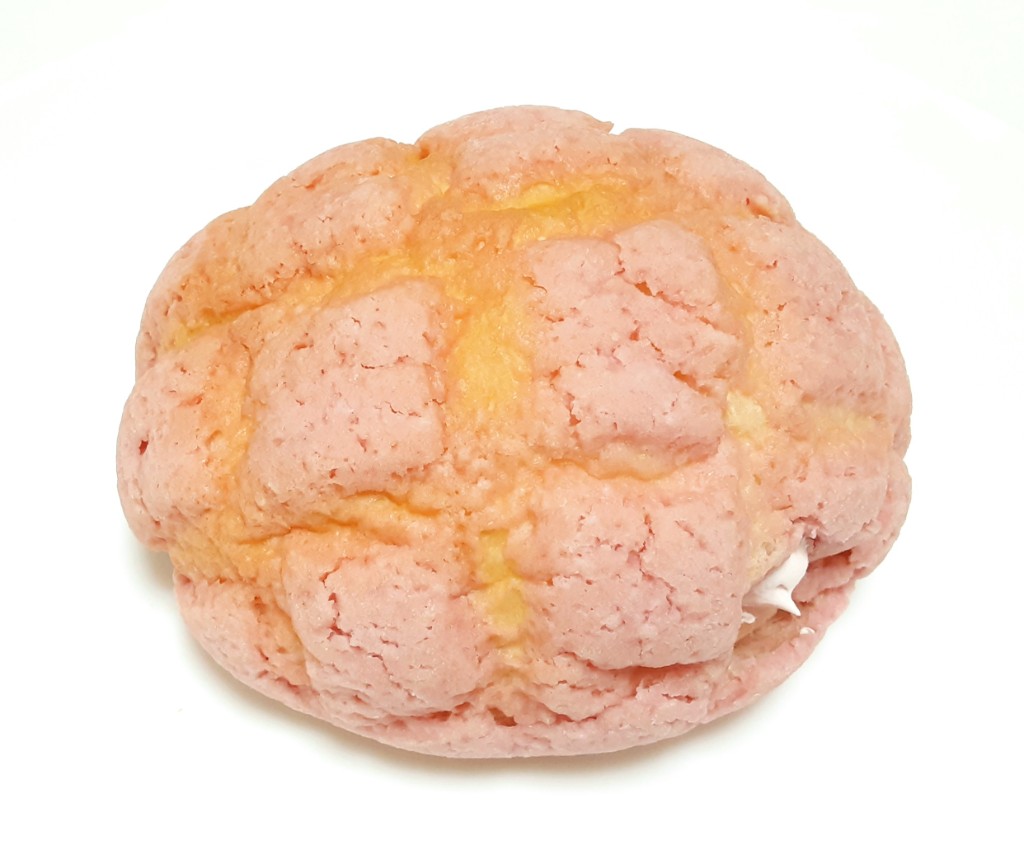 見た目は薄いピンク色のメロンパン。柔らか食感で、甘くて美味しい〜(*^^*)