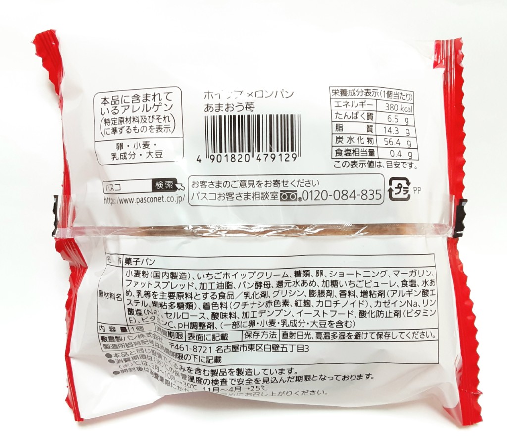 Pasco ホイップメロンパン あまおう苺。毎年発売されているこの商品。90円だったので、今年も購入しました。