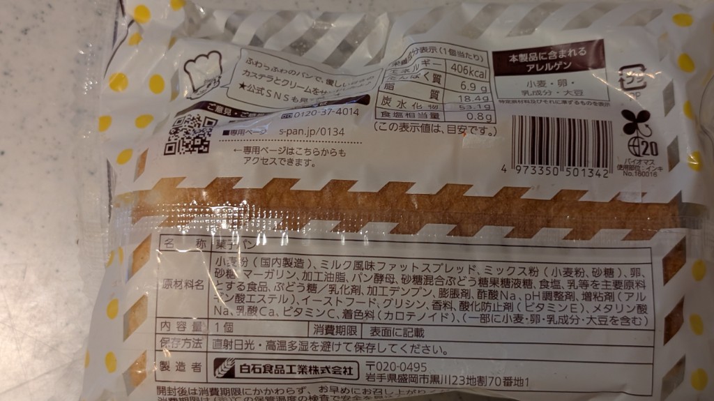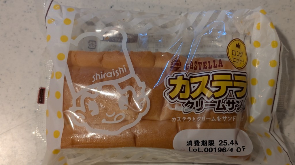 ロングセラーのこの商品。外袋の説明に「カステラとクリームをサンドしました」と書いてありました。そのまんまかい笑