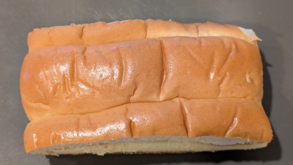 コッペパンにホイップクリームを塗って、カステラを挟んだ商品。