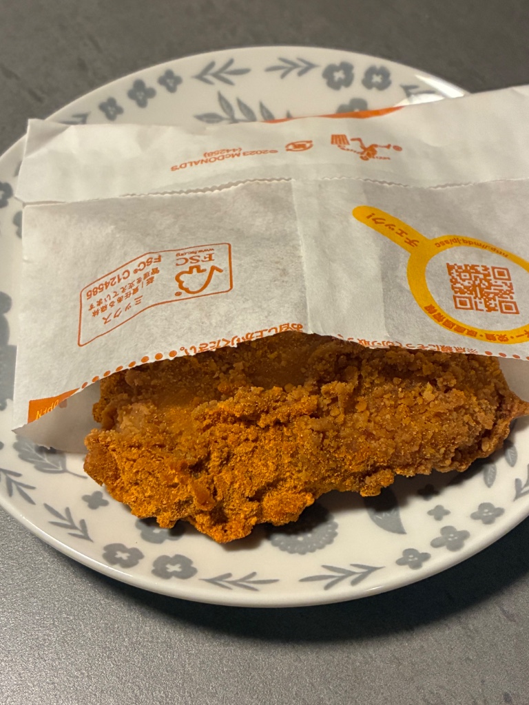衣はザクザクした良い歯応えです。チキンは油分は無くかなり淡白な感じです。パサパサしてますが個人的には好みでした。