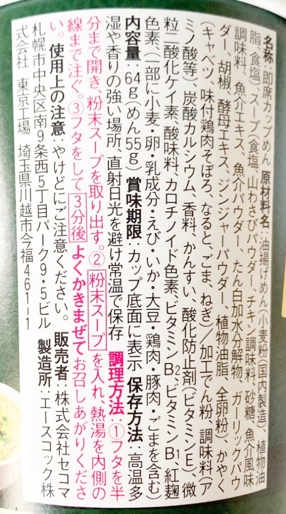 近所のスーパーの北海道物産展で181円で購入。製造はエースコックです。