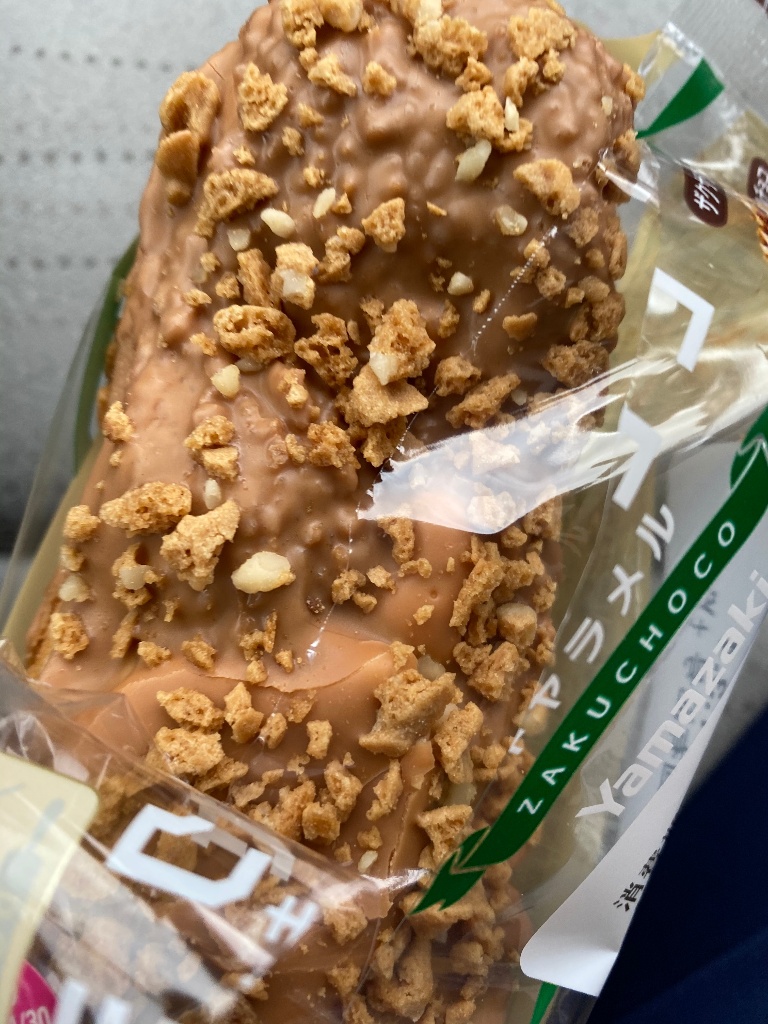 店頭で見かけた時は、キャラメルフレーバーのものにそこまで興味がないこともあってスルーしましたが、クチコミを見てエクレアじゃなくてドーナツ、ザクザクしてるとのことで気になって、昨日の日中は絶対ドーナツを食べたい!と思っていたので購入。