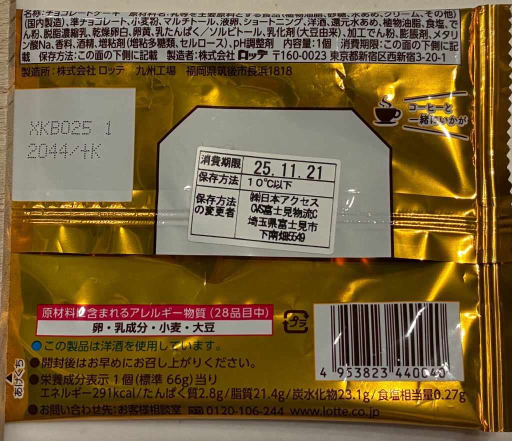 ロッテ 生チョコパイ。いつの間にかカロリーが変わっていたこの商品。お値引き品にて購入しました。