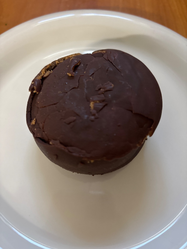 外側はチョコでコーティングされておりパリッとまではいかない少し柔らかめのコーティングでした。