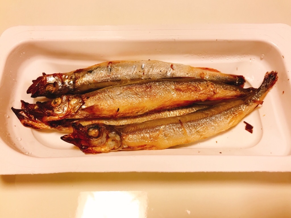 岡田水産ってとこは ししゃもが有名なメーカーさんなのかな? 塩加減は弱めだけど私はこのくらいが丁度いいかな。 思ってたより悪くなかった。 パサつきとかあるの覚悟してたからw 香ばしさは嘴と尾っぽんとこから微かにするかな?って感じ。 ししゃもは焼くの苦じゃないし自分で焼いた方が美味しいからリピートはどうかなぁ🤔 でもコレお酒飲む人はいいかもだな〜🍺 72g 定価198円+税