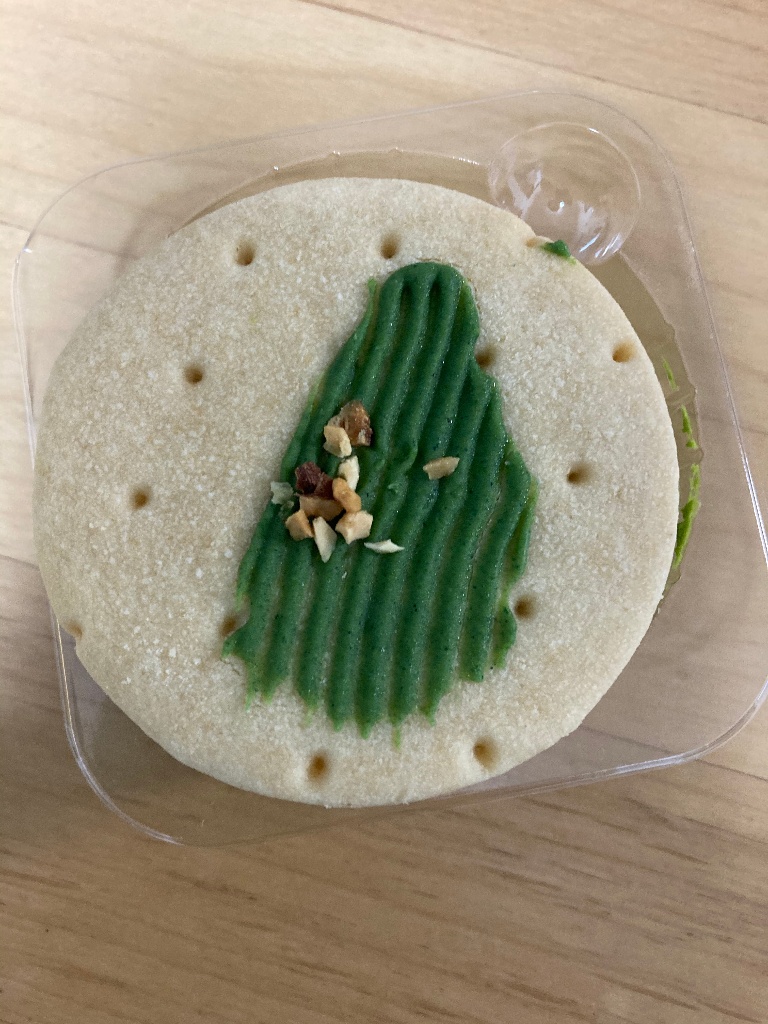 クッキーのしっとりした生地、チーズのとろっとした酸味のある感じ、抹茶味が順番に感じられました。