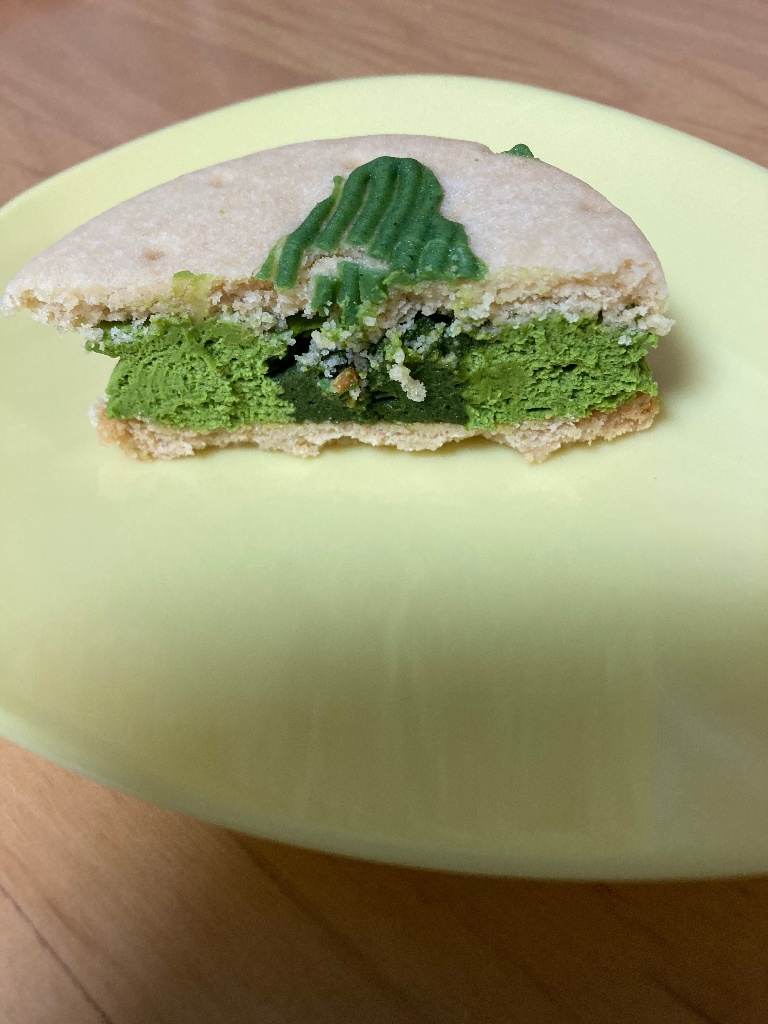 掴むと端がほろっと崩れる、かなりソフトなクッキー生地に、たっぷり抹茶チーズクリームがサンドされています。