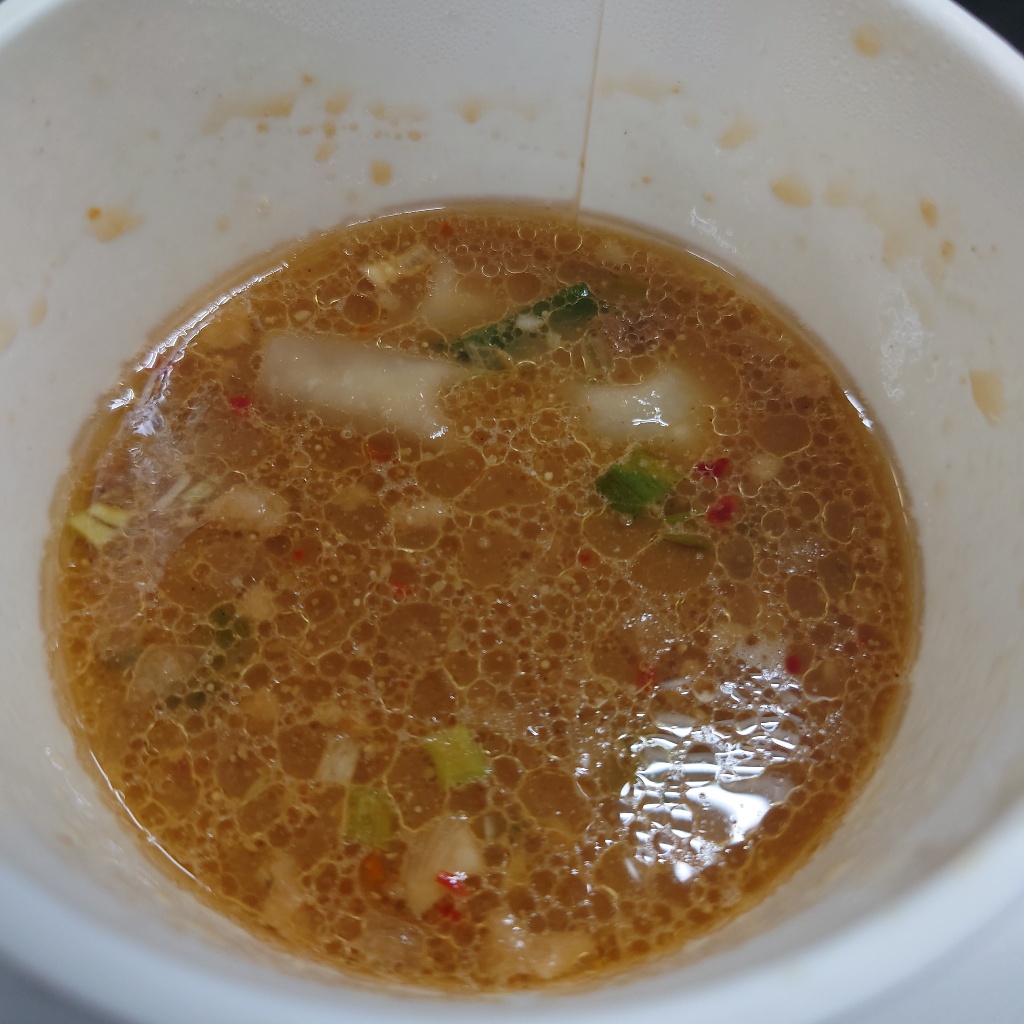 インスタントで安堵出来る品がなかなか無い中、久し振りにこれなら非常時込みで満足出来ると思いました。表面に透明油層も出来るし、豚骨醤油系?結構濃い味でトロッとしていますが、ウッとなるような豚臭さは無い。薄味好みとしてはお湯を多めに挿して丁度良い位です。
