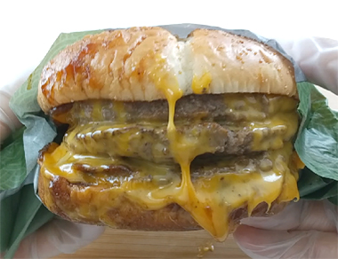 パティが1枚増えることで肉肉しさが際立ち、通常のダブル肉厚ビーフで唯一ネックに感じるソースの濃さ、塩辛さが軽減されます。