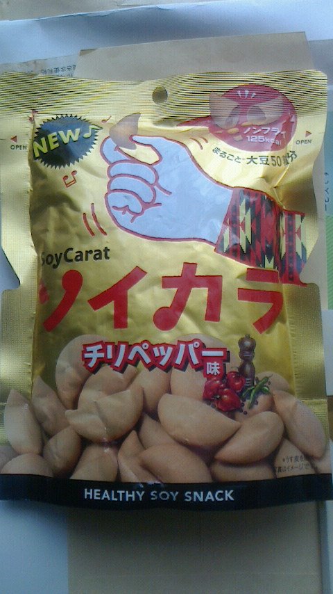 チリペッパー味はスナックの色が赤っぽい色してますね(唐辛子色?)。味は薄いけれど、ほのかに香ばしくてピリッと辛くてなかなか美味しいです。ソイカラ独特の噛み応えのある食感も何だか癖になります。前にチーズ味も食べたことがあるのですが、私はこちらの方が断然好みです。1袋125kcalとヘルシーなので食事のカロリー制限している時や、夜ちょっとお腹がすいたときに食べたりしています。... 続きを読む