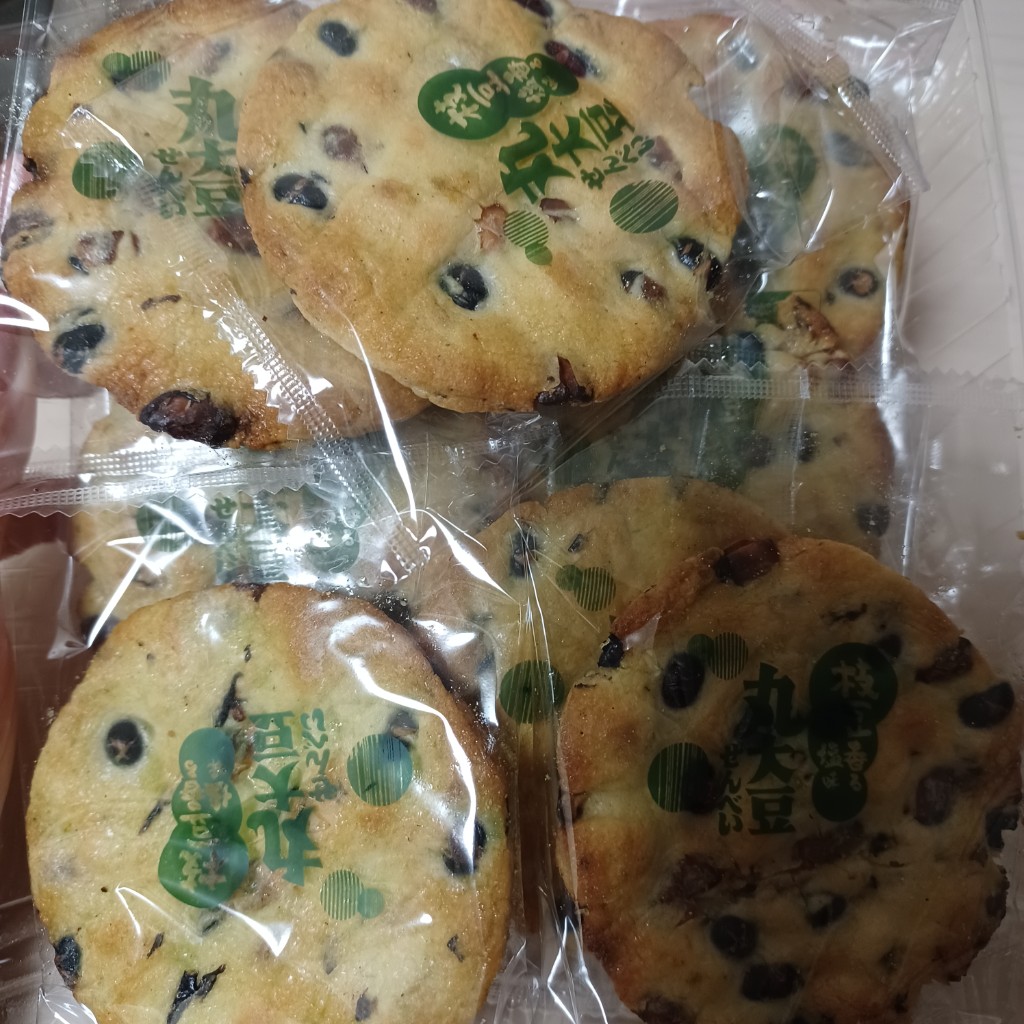 枝豆の風味がある塩と丸粒の黒大豆がたっぷりでザクザク食感がたまらない美味しい塩せんべいでした!