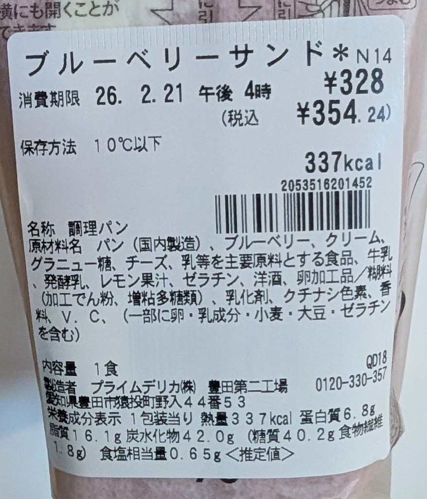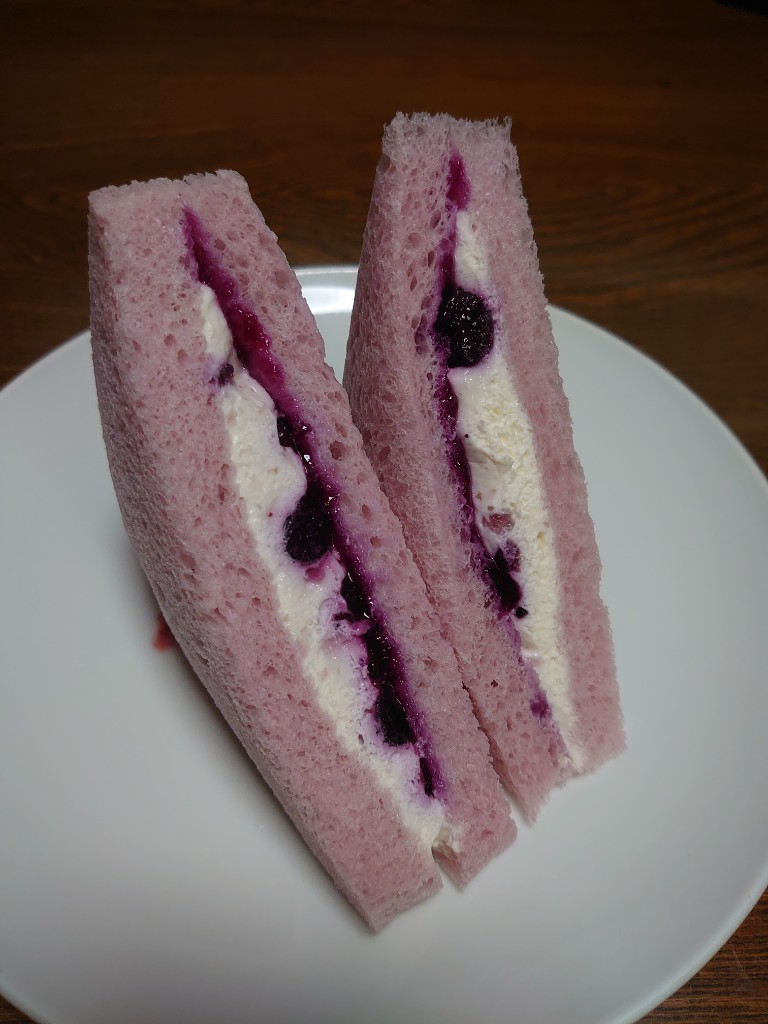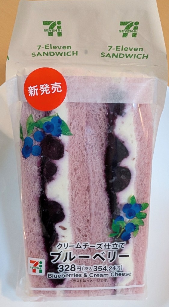 久しぶりにセブンにてフルーツ系サンド。ブルーベリー+クリームチーズ仕立てに惹かれコチラは初購入。