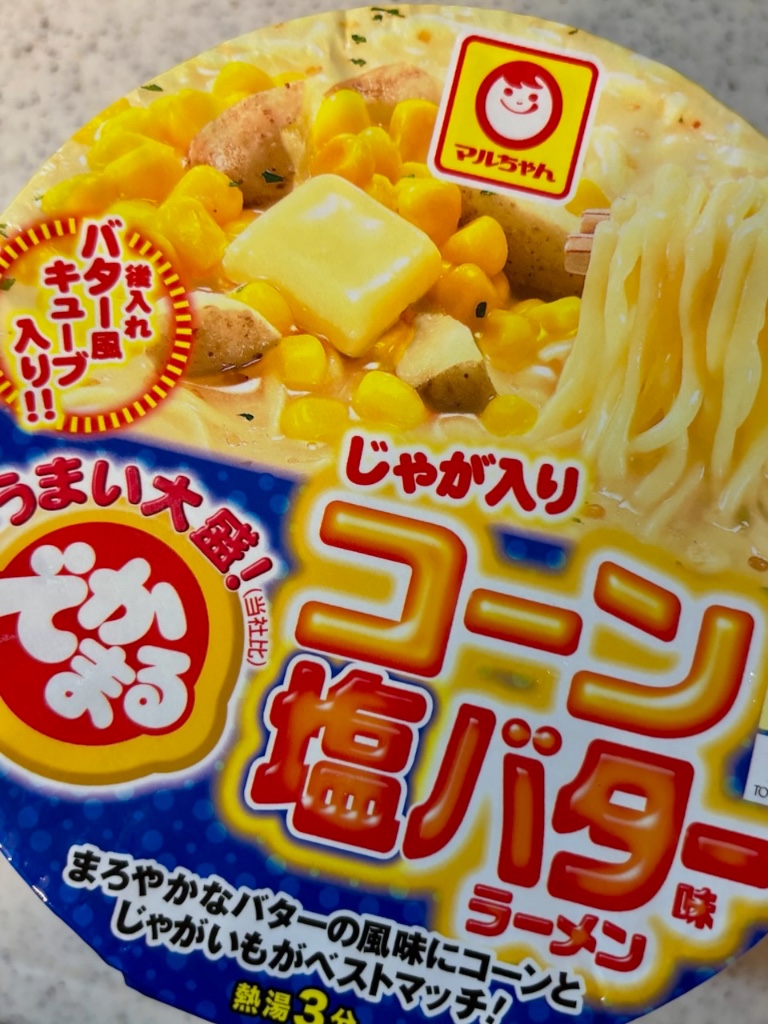 ハズせないカップ麺を目っけたんよ。でかまるのじゃが入りコーン塩バター味ラーメン。先日スーパーカップのコーン塩バターを食べたけんど美味しかったんよ。そやからコレもハズせんと思たワケ。てか単に塩バターコーンが好きなだけやけどね。でもコレ実はジャガイモ入りなんよ。テンションあげあげ。大手スーパーのカップ麺売り場をウロウロ。あったであったで。新商品コーナーにデンと鎮座しとった。ビッグサイズのカップやね。幼児用のおもちゃのバケツくらいあるかも。すかさずカゴイン。1つならええけど4つとか買うたら買い物袋が一杯になるで。さてさて、フタを開けると小袋が3つ。かやくと粉末スープとバター風キューブ。かやくは乾燥コーン。麺の上には乾燥ジャガイモがゴロゴロ。かやくと粉末スープを麺の上にあけて、熱湯を注いで待つこと3分、よーく混ぜ混ぜしたら、最後にバター風キューブをポイっと置いて出来上がり。バター風キューブっちゅう名前から察すると、マーガリンみたいな固形油にバターの風味を付けたんやろね。混ぜ混ぜして溶かしてから食べよかね。ほないただきまひょ。まずはスープから。ズズズ… うんま♪ コレコレ。バター風味の塩スープ。ガツン系や濃厚系とは真逆のアッサリとした優しい味。ええねえ。つづけて麺をズルズルっとな。勝手に細麺を想像しとったけんど意外にも太麺でしっかりした弾力。3分キッチリで食べ始めると少々ゴワッとした食感なんよ。食べごたえあるやん。具材はジャガイモとコーンとゴマとパセリ。ジャガイモは大きくて存在感バッチリ。コーンは十分な粒数あるんよ。コレは満足度が高いやね。アッサリやけどコクのある塩スープは飽きずに最後まで飲めるし、肌寒い季節にいただくとホッコリするんよ。もうボチボチ冬支度やね。冬服を出したり暖房器具を試運転したり。自動車のタイヤもスタッドレスに履き替えんと。最近の新型車ってタイヤサイズがどんどんデカなっとるんよ。自分の調べたらなんと21インチ!自転車か!タイヤもでかまるサイズになったもんやね。専門店でホイールとセットで見積もってもろたら驚異の30万円超!ひぇぇぇぇぇ〜っ!原チャリ買えるやん。それでも安いほうなんやて。高いほヤツだと40万以上。失神しそうやわ。こちとらランチ百円を目指してケチケチ頑張ってきたのに、タイヤでパーになってまうやん。でもホレ、あんましケチって安いタイヤ買うて、雪の上でツルツル滑ったら怖いしね。ツルツルするのはカップ麺だけで十分。ちなみに今回いただいたでかまるは定価271円。明日からかけそばにしよか。年末ジャンボに期待やね。ごちそさんでした〜... 続きを読む