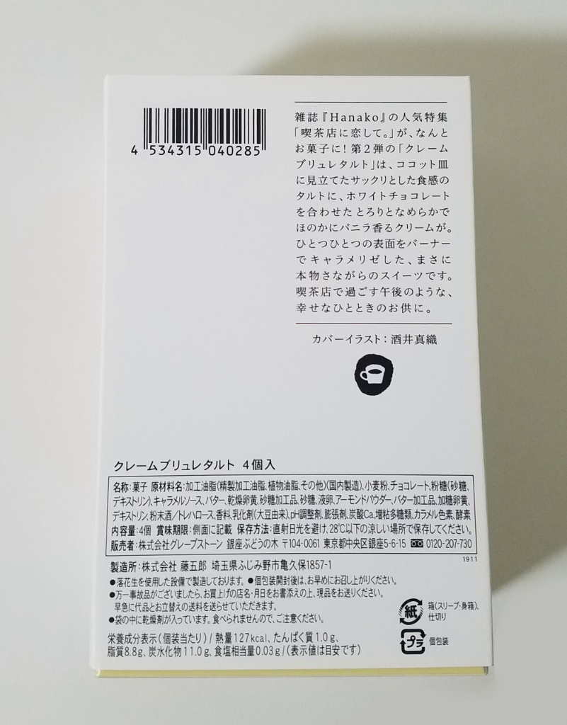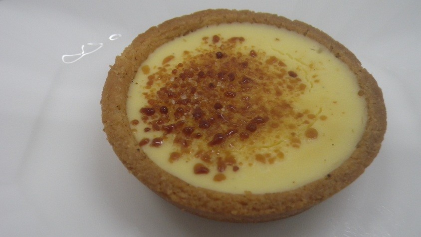 さくさくタルト、クレームブリュレ味のホワイトチョコクリーム、ザクザクとしたカラメル、中に入ったキャラメルソース、美味しいものを全部詰めたみたいな贅沢なお菓子です。