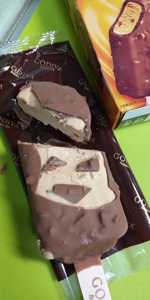 ローソン GODIVA ミルクチョコレートキャラメルアップルバー 箱80mlは、キャラメルペーストを練り込んだ口どけなめらかなキャラメルアイスクリームです。キャラメルとりんごとゴディバのチョコレートを一緒に食べると口の中が幸せな気分になり、うますぎます。... 続きを読む