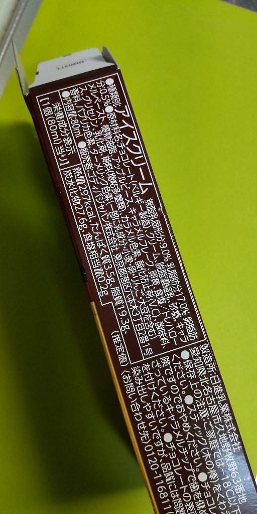 キャラメルアップルアイスをミルクチョコでコーティングした甘々アイスです🍨