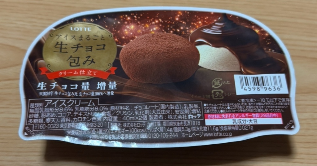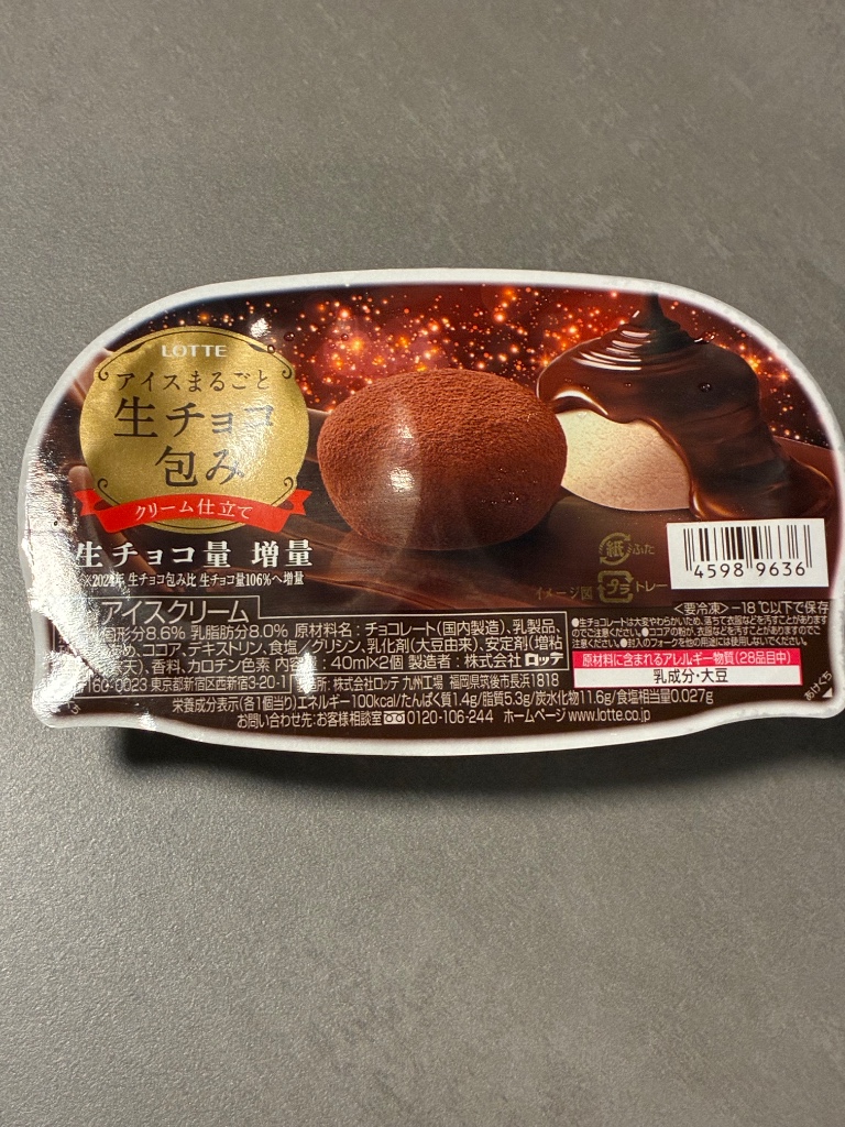 ロッテのアイスまるごと生チョコ包みバニラです。