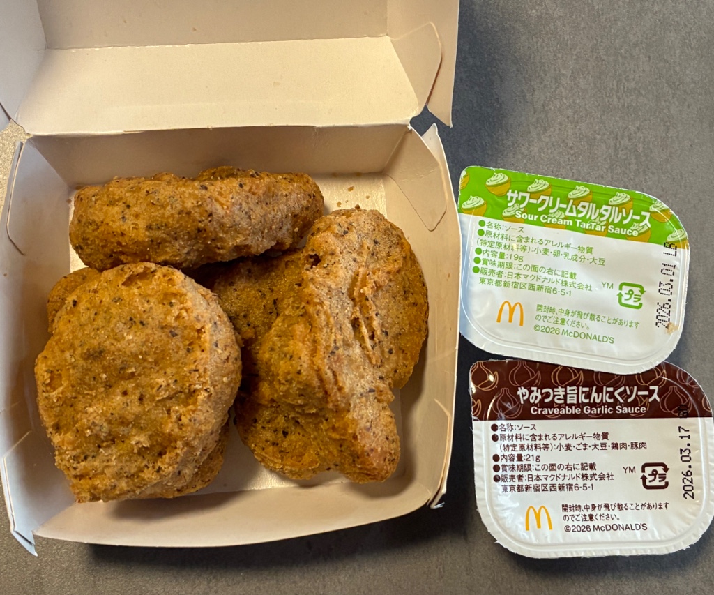 マクドナルドのスパイシーチキンマックナゲット黒胡椒ガーリック。
