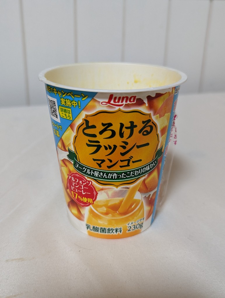 これはマンゴー味が濃厚な飲むヨーグルトです。