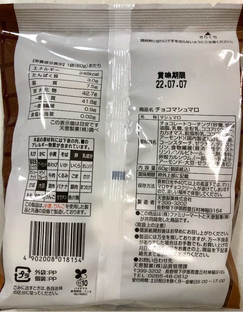 天恵製菓 くちどけなめらか チョコマシュマロ。パケ変?リニューアル?したこの商品。久しぶりに購入しました。