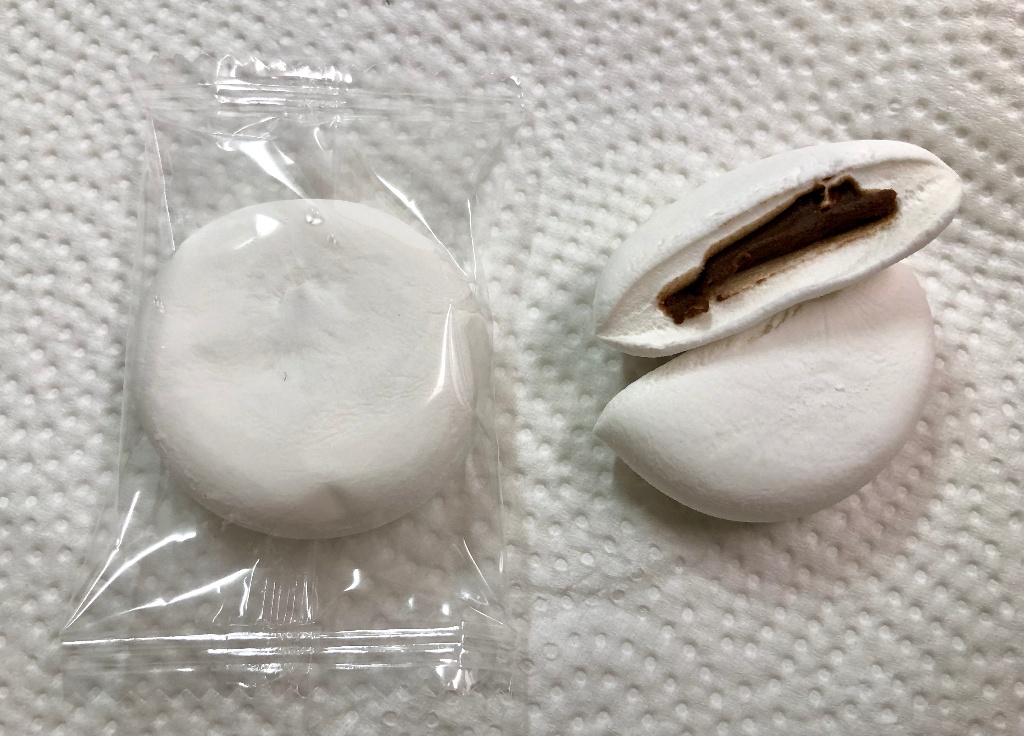 ムチッと、ムニッと柔らかなマシュマロはエイワのマシュマロよりはしっかりめかな?中のチョコはスイートくらいの程よい甘さで食べやすく。