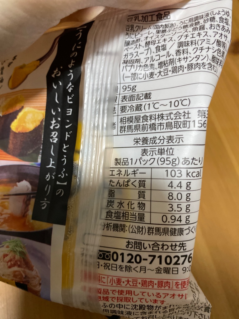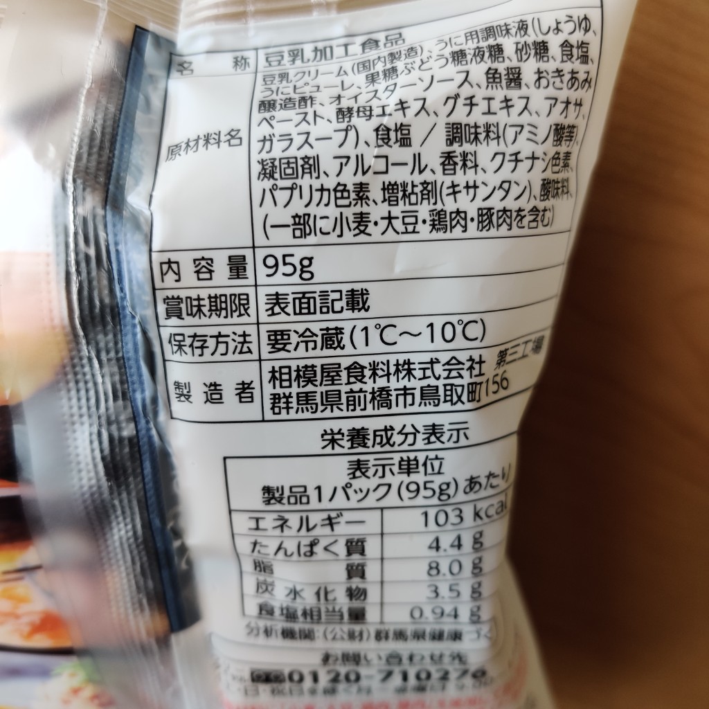 ウニっぽい香りはしますが、甘ったるくて食感もまったりブチュブチュしていて、うにでも豆腐でもないです。食べ物は途中で残したりしない派なんですが、申し訳ないけれど最後まで食べきれませんでした。半分も食べないうちにごめんなさい。
