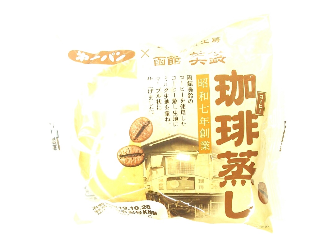 そういえばコーヒー風味の蒸しパンってめずらしい 甘さ控えめほろにがコーヒー生地とやさしい味のミルク生地が マーブル状になっています ふんわりしっとり、それぞれが美味しくバランスもよいです 函館美鈴さん・・・北海道で一番古い老舗珈琲店だそうです