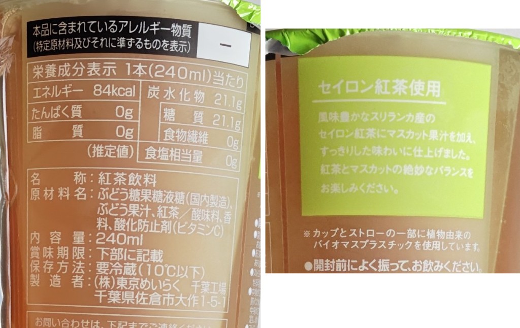 紅茶もマスカットの味も薄め🥤