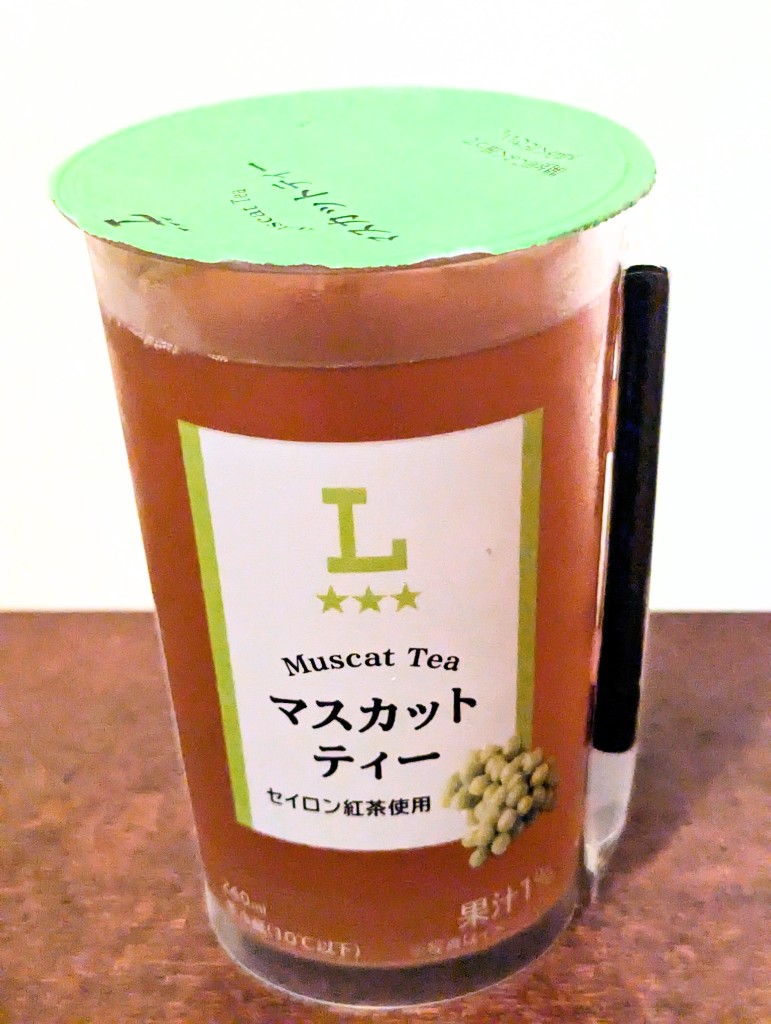 此の所、コーヒーのチルドカップばかり購入していたので、ちょっと違うの飲みたいなぁと言う事で最寄りのLAWSON覗いてみたらお手頃価格でマスカットティー発見したので購入してみました。お味はサッパリめで甘さも控えめです。暑いので、ごくごく飲めて私には好感触の飲み物でした。本格的なアイスティーを求めている方には物足りなく感じると思います。ペットボトル飲料より飲み切り易く消費期限も長めなので、私には良い飲み物でした。