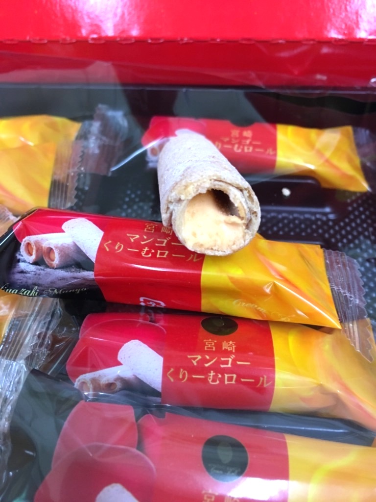 宮崎空港商事から販売されている、スイーツです。宮崎マンゴーくりーむロール です。ラング・ド・シャのような、さくさくとした、軽い食感のクッキー生地と、あまいマンゴーくりーむがはいっていておいしかったです。... 続きを読む