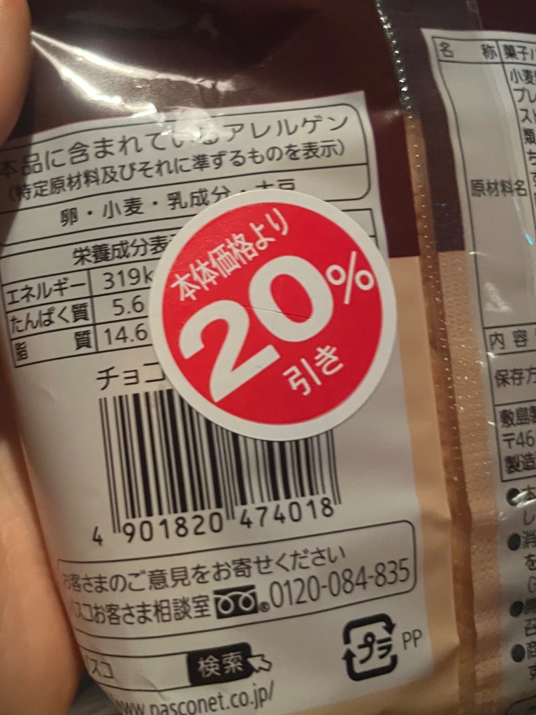 Pasco チョコあ~んぱん。以前にも発売されたこの商品。安くなっていたので、今回も購入しました。