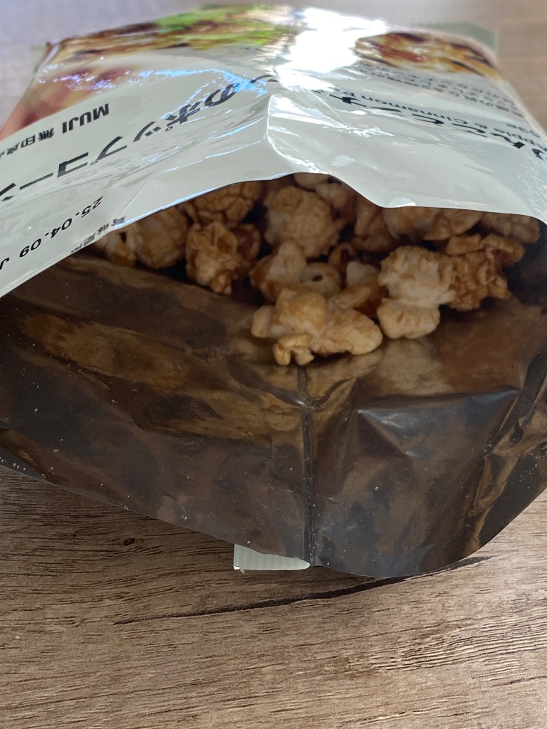 白い方は軽くてほんのり甘さのあるポップコーンで茶色の方がキャラメル味でシャリっと感もあって好きです