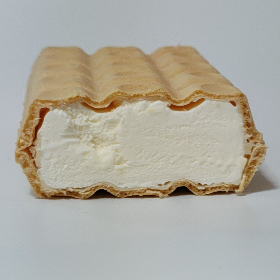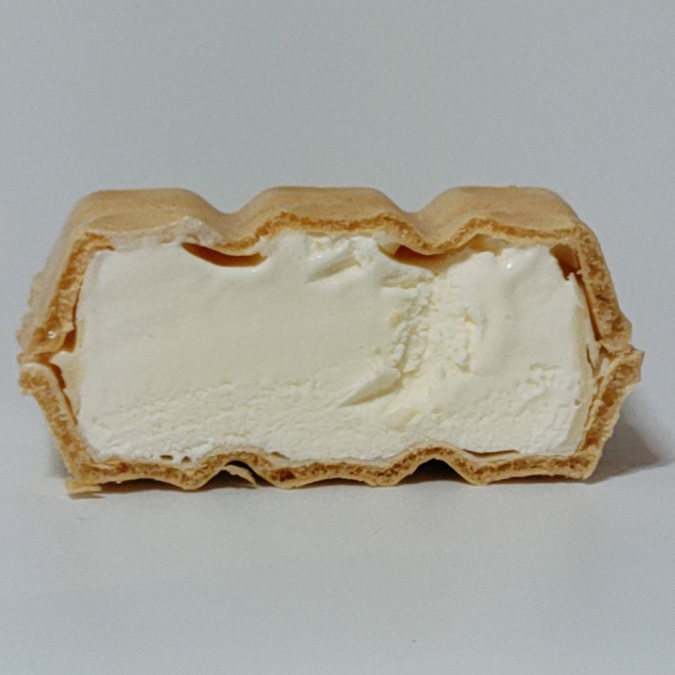 ジャンボなボリュームで小腹満たしにも、誰かと分けて食べるのにもぴったりなモナカアイスです。アイスクリーム規格のコクうまアイスを、ほんのり甘い洋菓子風もなかではさみました。