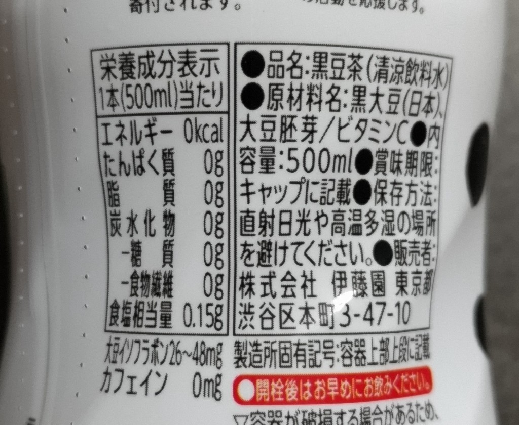 レモンティーもコーヒーも昨日飲んだしと思っていたところ黒豆茶が目に入り購入